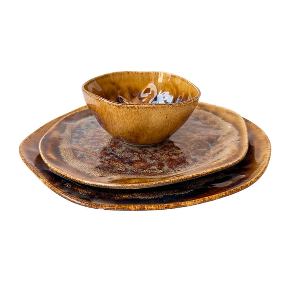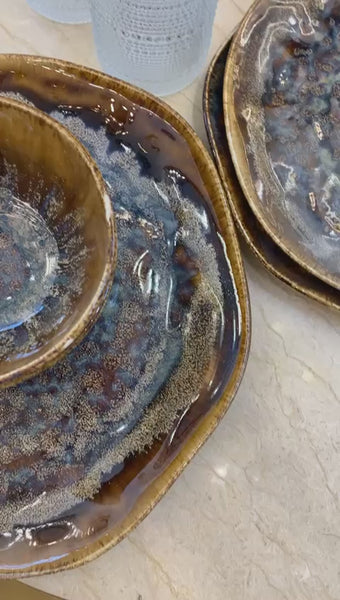 The Organic Dinner Set is a 24 piece collection comprised of six 28 cm flat plates, six 32 cm flat plates, deep wok plates and six bowls suitable for salads or soups. Designed for both oven and microwave use, this eco-friendly dinnerware is crafted in Egypt, offering durability and versatility for various dining needs.
